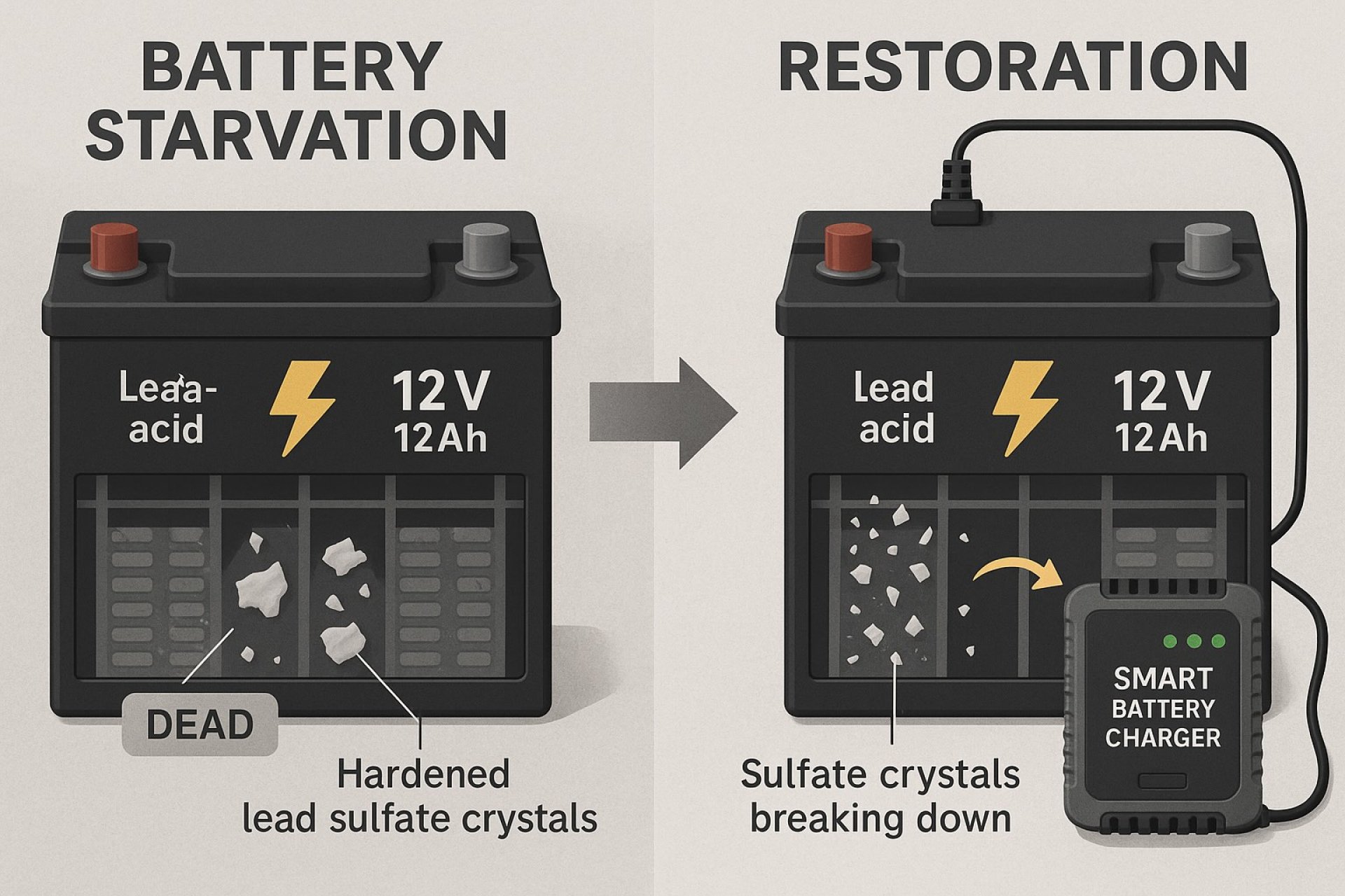Pulse Charging: Utilizing a charger that sends high-frequency pulses can break down the sulfate crystals without overheating the battery.